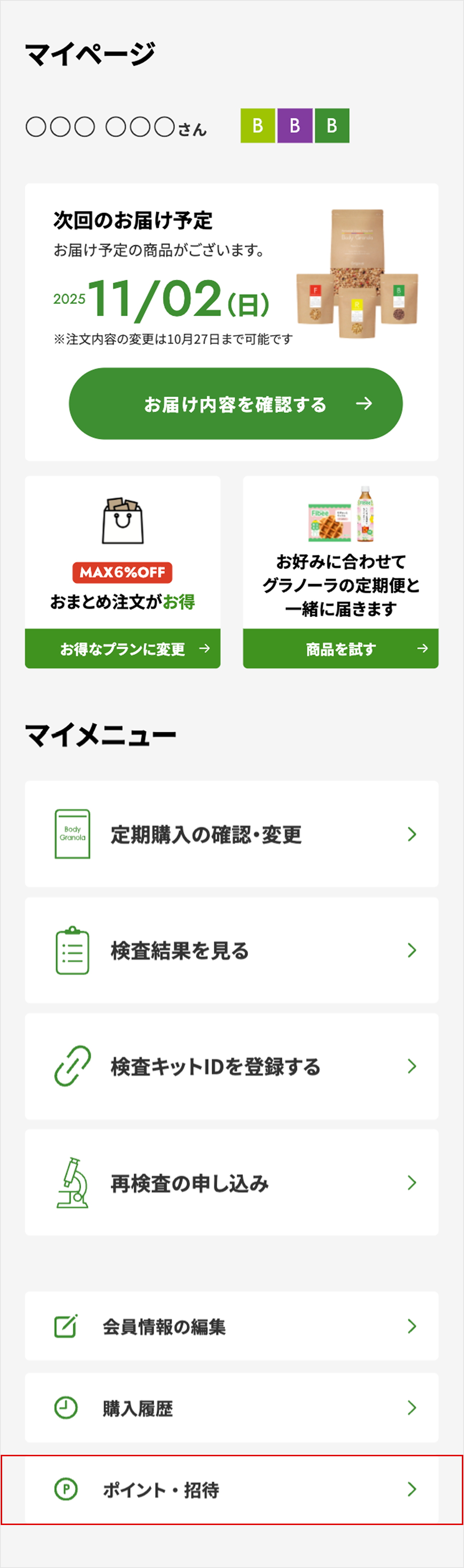 もしくは、マイメニューの「Body Granolaの定期購入」をクリックしてください。