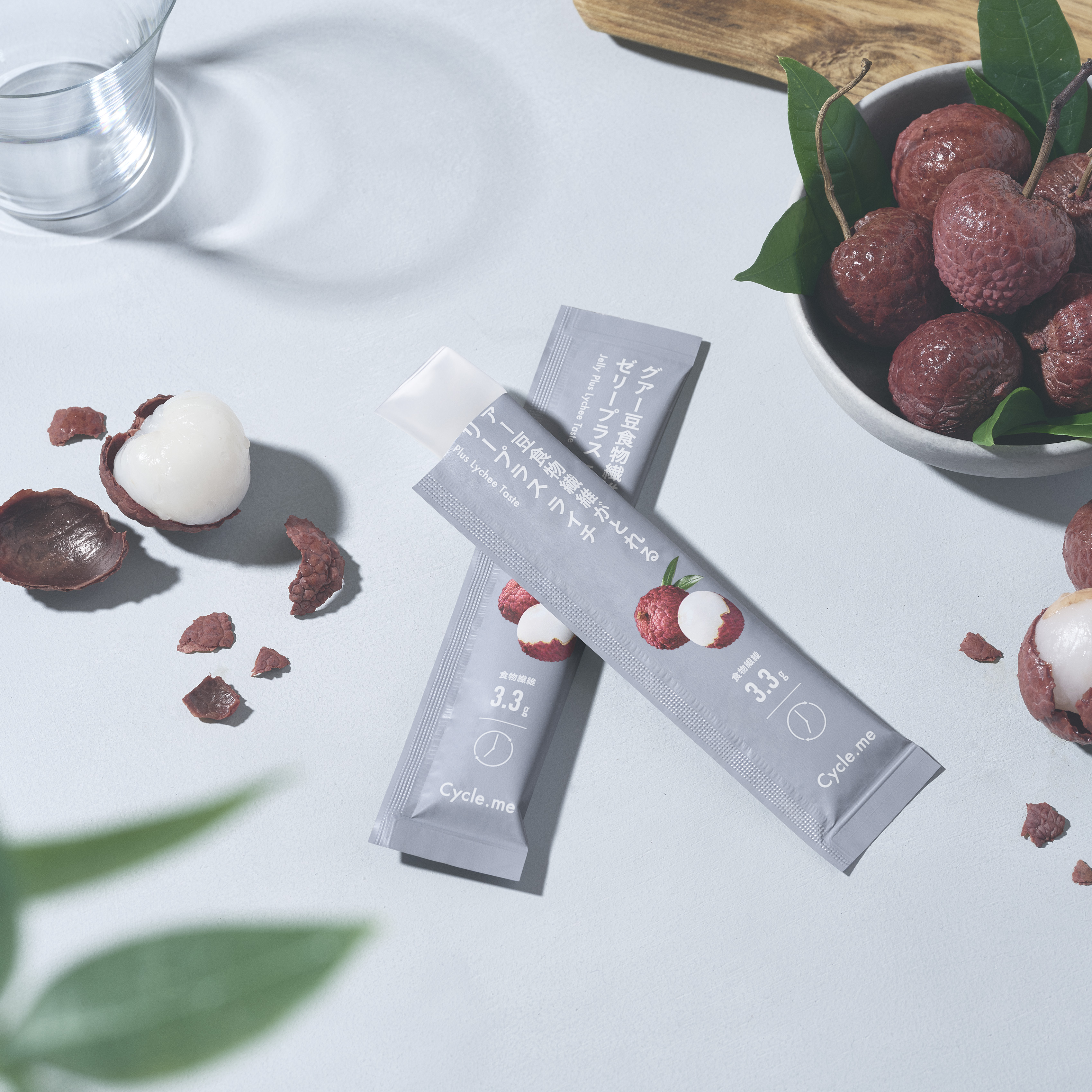グアーガム分解物(食物繊維)(インド製造)、果糖ぶどう糖液糖、ライチ果汁、乳製品乳酸菌飲料(殺菌)/ゲル化剤(増粘多糖類)、香料、酸味料、ソルビトール、甘味料(スクラロース、アセスルファムK)